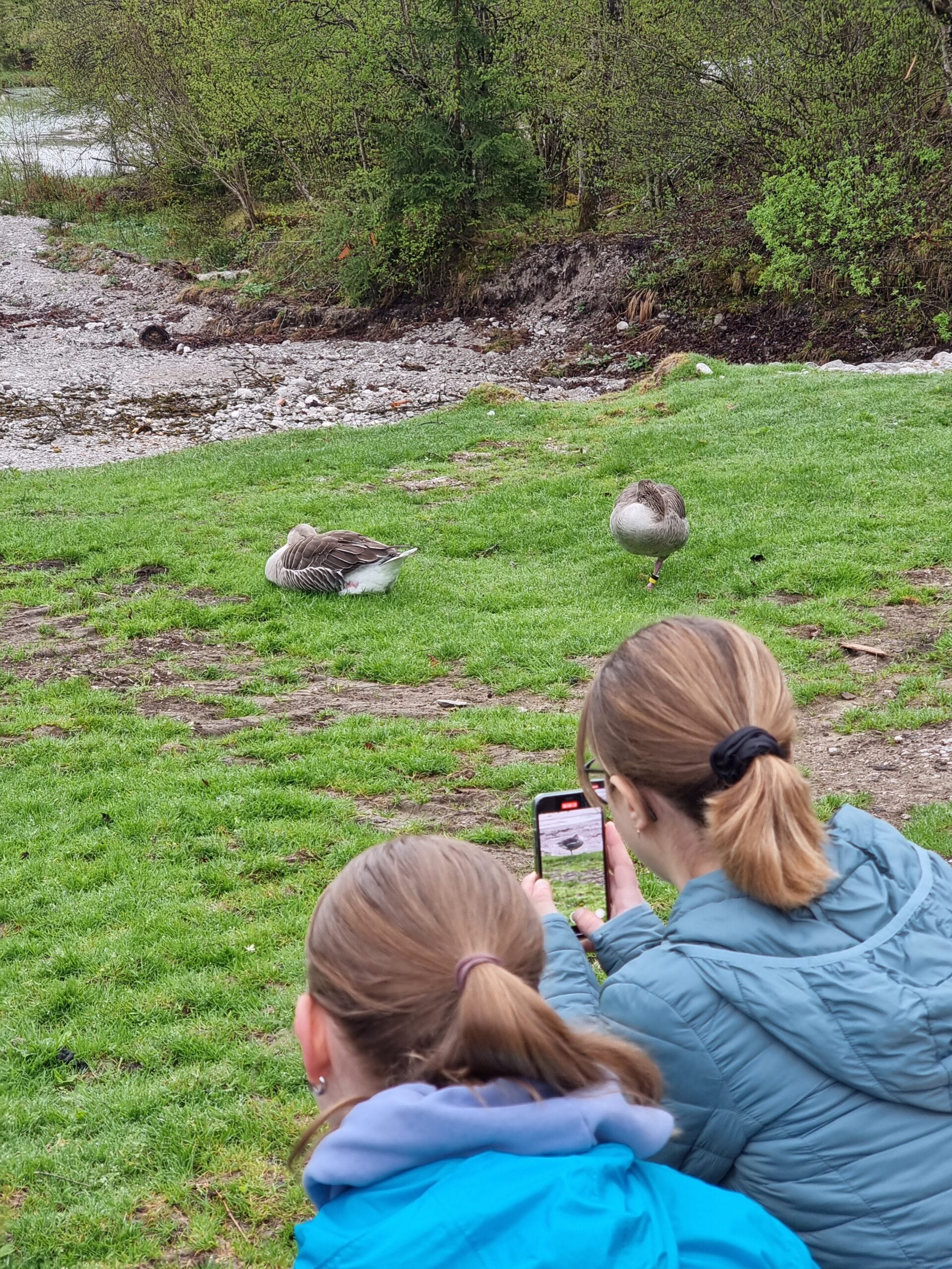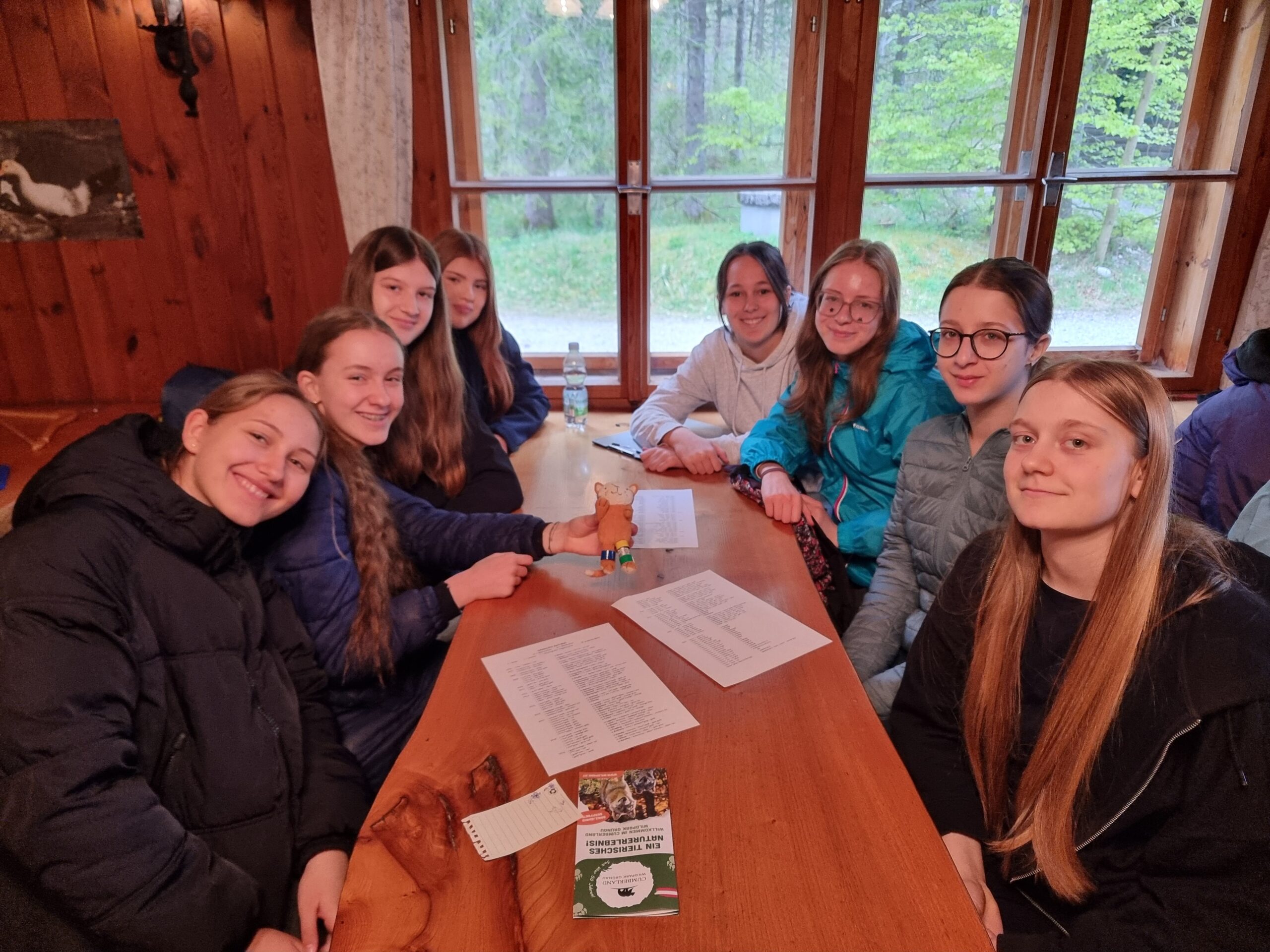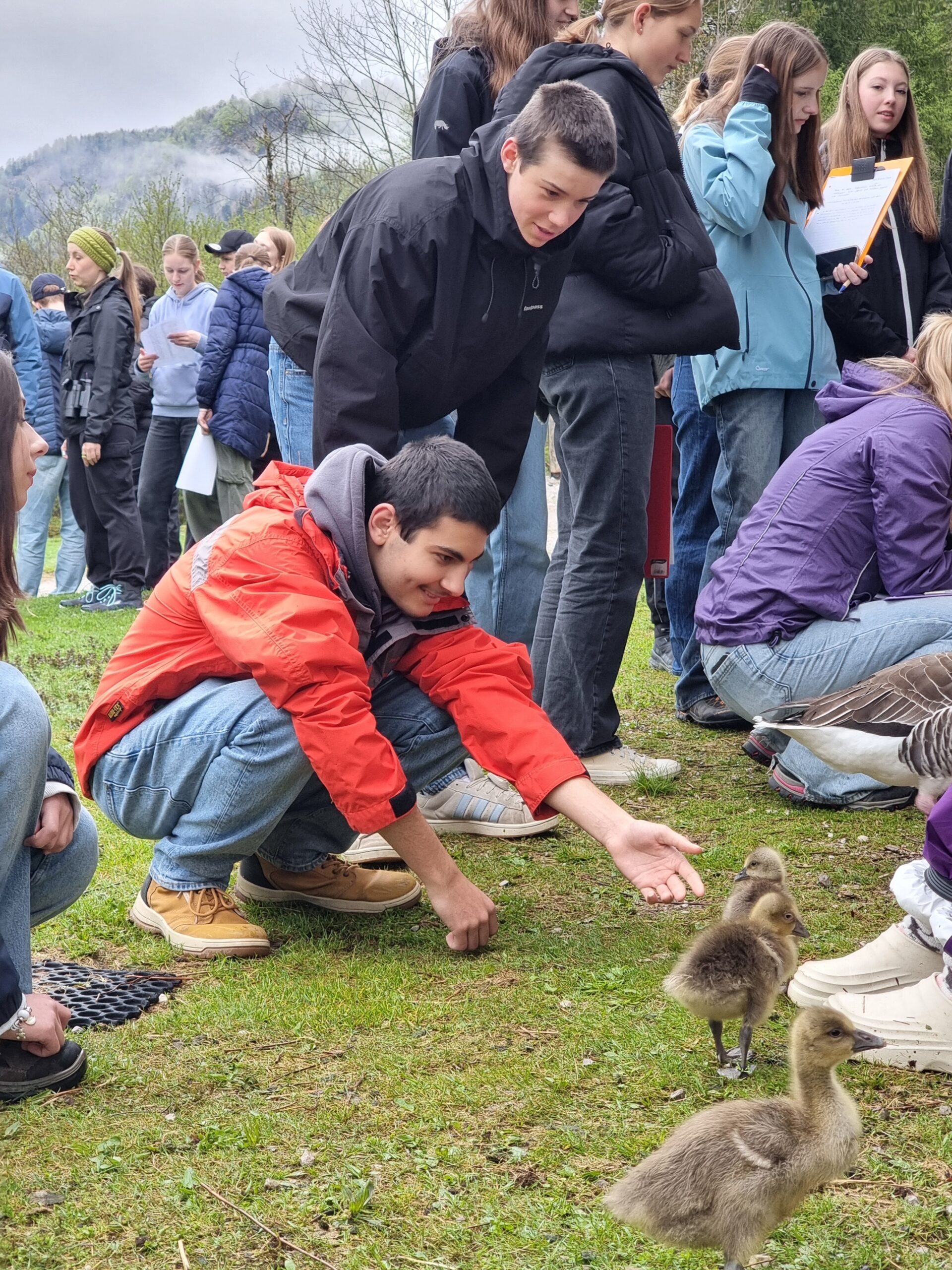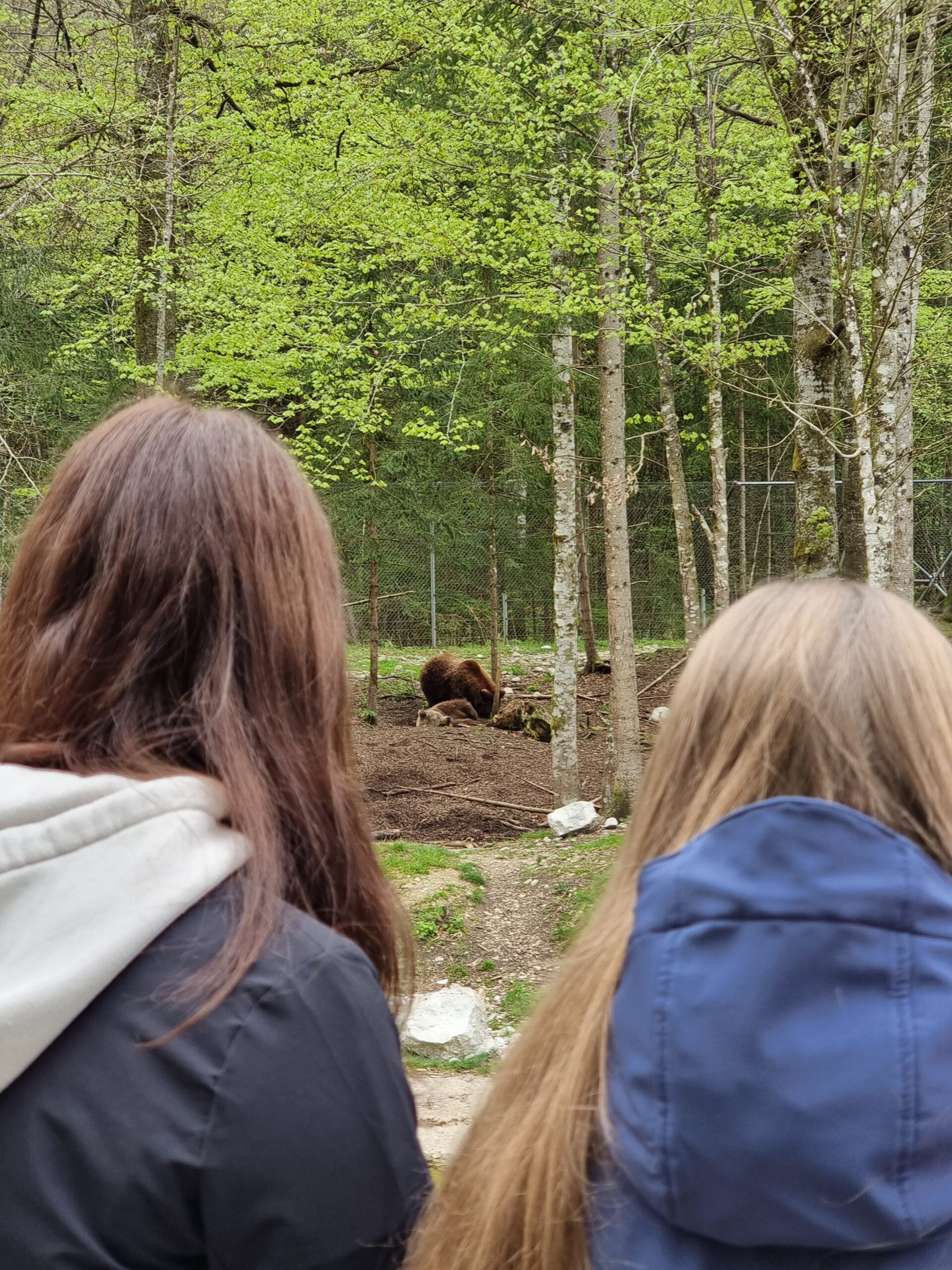 Danach übernahm Prof. Auberger von ihrer Kollegin und es ging weiter zur Konrad Lorenz Forschungsstelle im idyllischen Almtal. Dort erwarteten die Schüler*innen zwei lehrreiche Tage voller praktischer Forschung: Sie lernten, wie man Gänsepaare anhand ihrer Beringung erkennt, durften im Bärengehege Futter verstecken und das Verhalten der Tiere vor und nach der Fütterung beobachten.