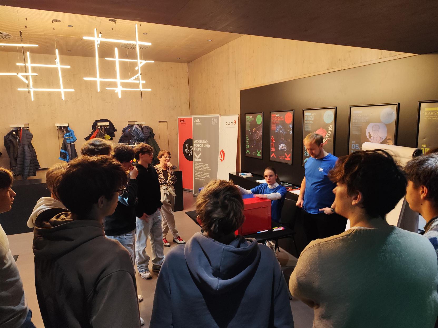 Im Rahmen der Quantenwoche der JKU durfte die 7BN am Mittwoch, den 19.11., einen spannenden Nachmittag am Linzer Universitätscampus verbringen. Dort erhielten die Schüler*innen eine verständliche und gleichzeitig tiefgehende Einführung in die Welt der Quantenphysik – ein Gebiet, das sonst oft erst in weiterführenden Studiengängen begegnet.
