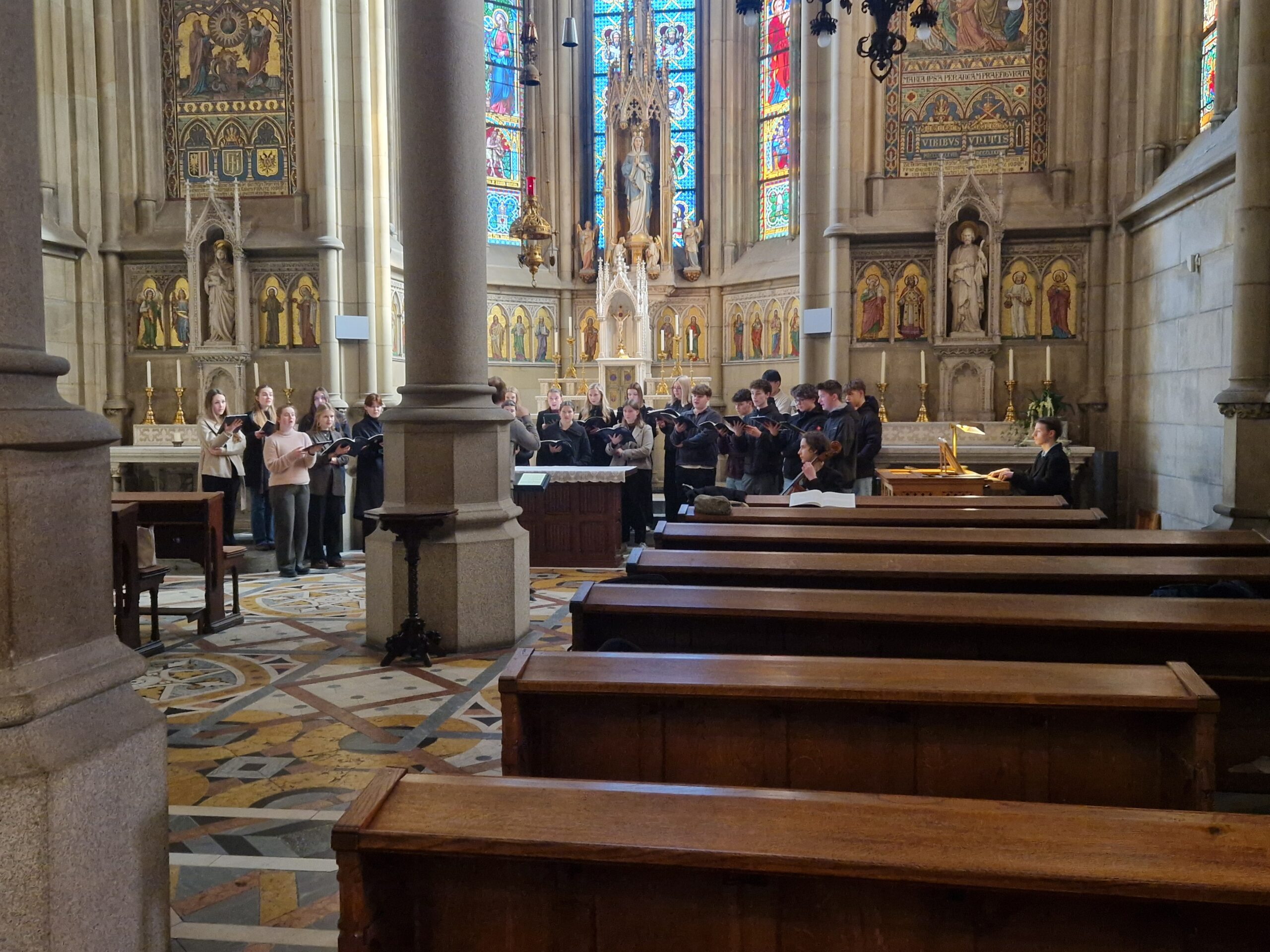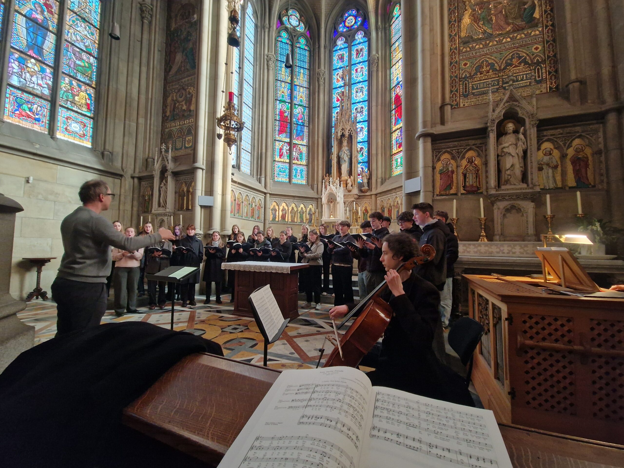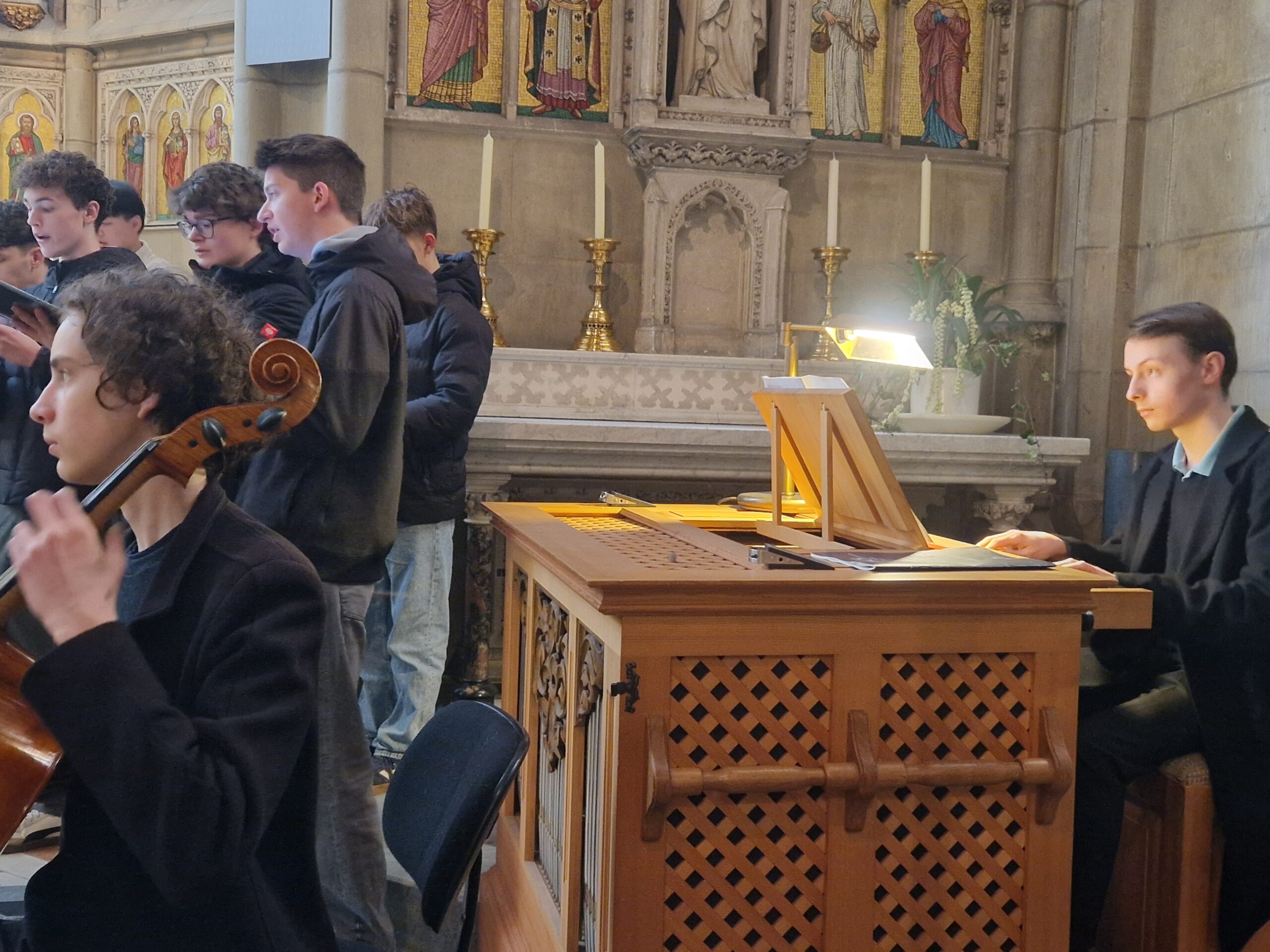 Der Klassenchor der 7M des Musikgymnasiums am Adalbert Stifter Gymnasium Linz wagt sich an eine der schönsten Kompositionen Johann Sebastian Bachs, die fünfstimmige Motette „Jesu, meine Freude„. Die 11 Sätze werden dabei chorisch wie solistisch besetzt mit Begleitung von Orgel und Cello musiziert. Neben der musikalischen Auseinandersetzung fand im Religionsunterricht auch eine inhaltliche Auseinandersetzung mit dem Text statt. In dieser Abendmusik erklingt die gesamte barocke Motette, unterbrochen von Texten der Schüler*innen, die den Bogen zum Jetzt schlagen.